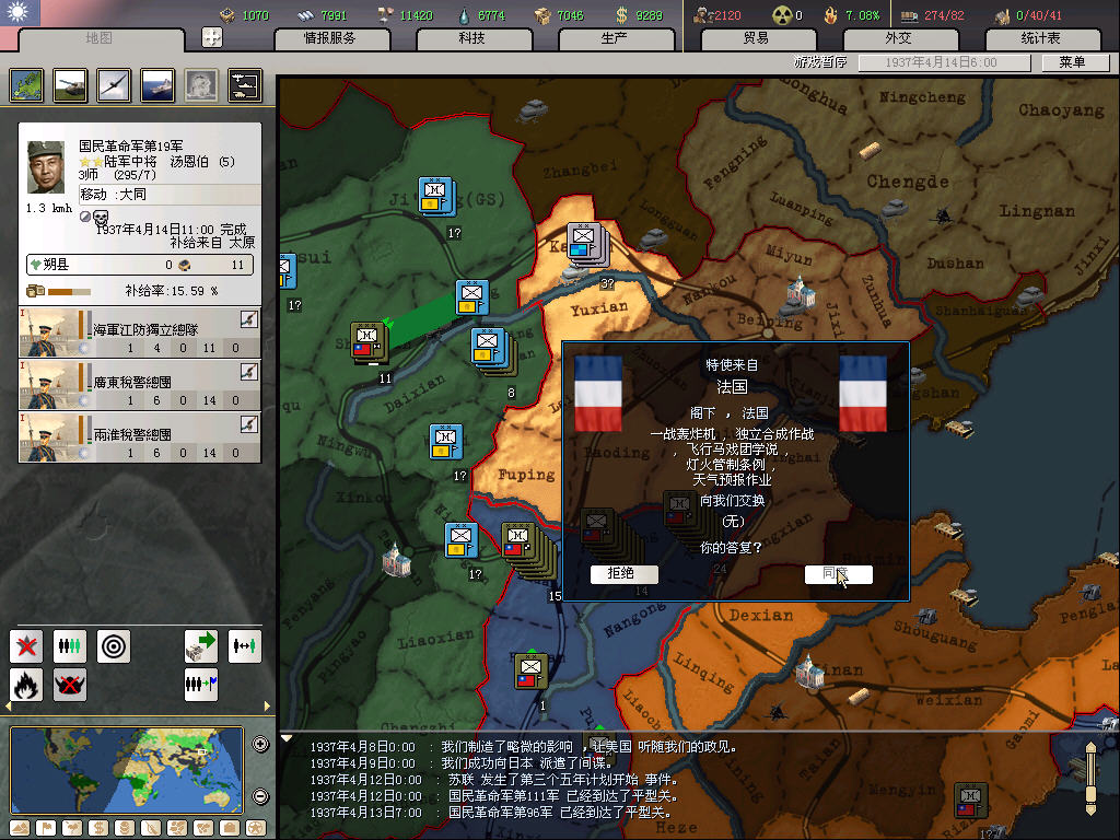 另,敢把新疆和平解放、五大主力换装的时间调整到联合政府最早发生时间前(1943年1月)么。。。。。那就那么荒废大半年伤不起,欧洲战场变化大