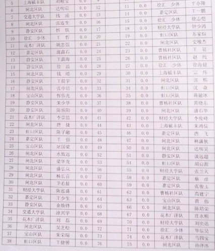 2011年“鸿儒杯”上海市象棋锦标赛参赛流水帐