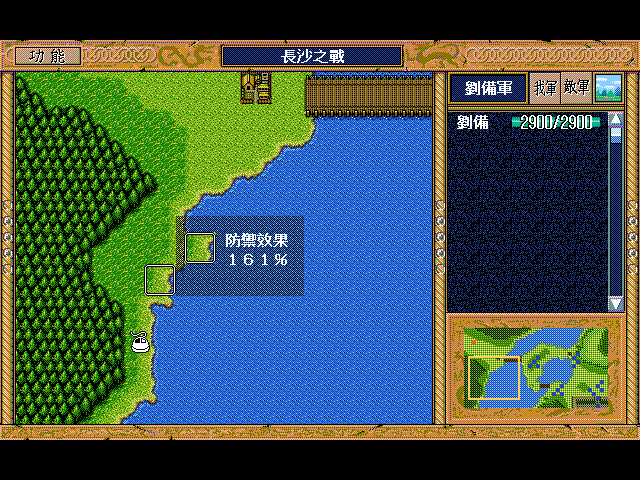 长沙之战,我方一过桥就会发生洪水。在桥的下方河边,有一处地形,部队是无法移动上去的,但如果你将鼠标点到该地形上查看地形的信息时,就会发现BUG,如附件图示。