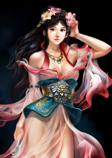 图一的MM清凉装两个要求,一是可否给MM加点头饰,最好是古装汉代的特点;二是给MM的衣服做成汉代的,三是把背景改改,朦胧化;