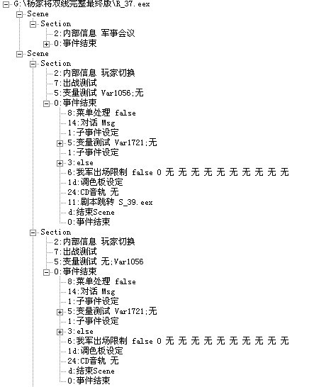 用剧本编辑器打开一看,发现有两个“出战测试”,根据之前的剧情,一个是进入第三十八关,一个是直接进入第四十关。