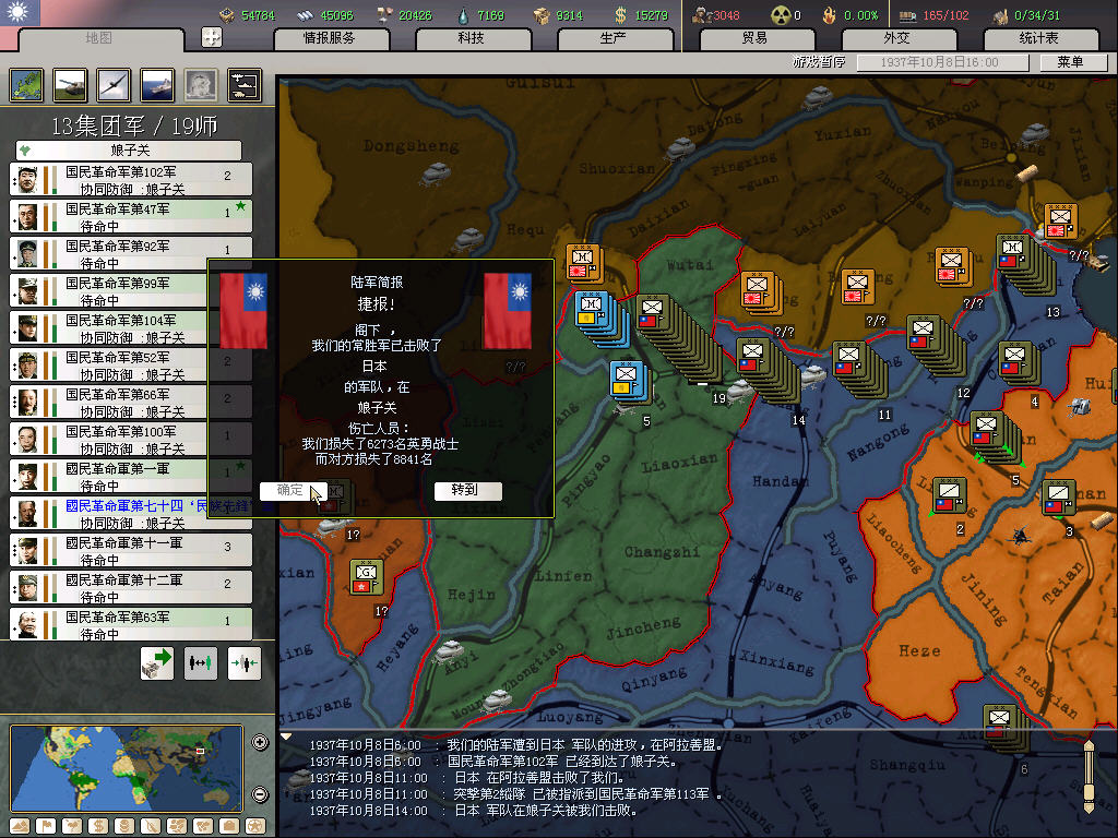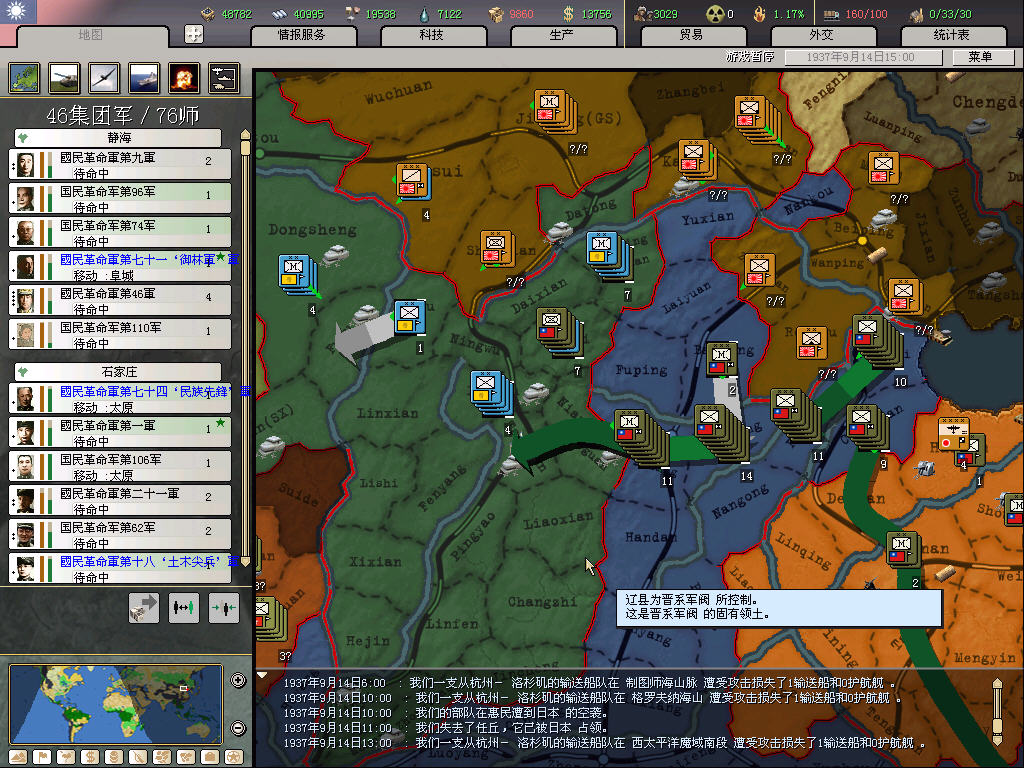 南方,基本就在沿海放一些民兵师,重要的地方放标准师,一般来说日军会在半年之后才登陆,放民兵的主要作用是防止乱登陆,挡是挡不住的