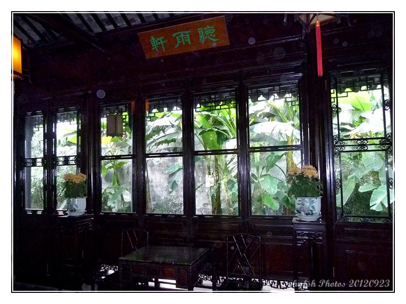 回到“绿荫”,再看曲溪楼,远近花木山水楼阁层次丰富,然仅为肉眼能见,拍成图画即失其趣了。此轩临水而筑,西侧原有一株古枫,小轩笼罩在树荫下,明高启有葵花诗:"艳发朱光里,丛依绿荫边。"故名。轩南庭院与古木交柯相邻,墙上有石匾嵌于其上,钱大昕书"花步小筑"。