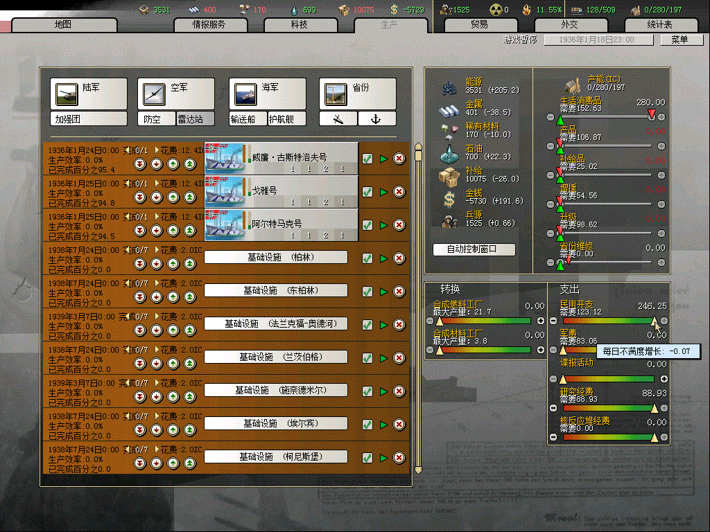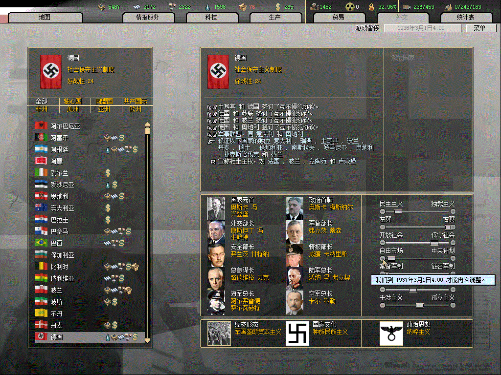 36.03.02顶着超高不满,元首在幕后毅然下令使用武士道国策,为未来战争做好准备。超高的不满让各地的游击队蠢蠢欲动,人民的愤怒随时会淹没这个政府,让政变赶紧到来吧
