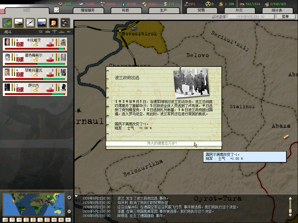 这个版本游击队太厉害了,北非军团的条件是什么?为什么我的补给都40000了还不出?还有意大利登陆马耳他岛的条件?还有就是占领重要城市不减不满了??还有就是失去重要城市的时候事件有误,应该是-10TC,结果变成了+10TC。。。。。
