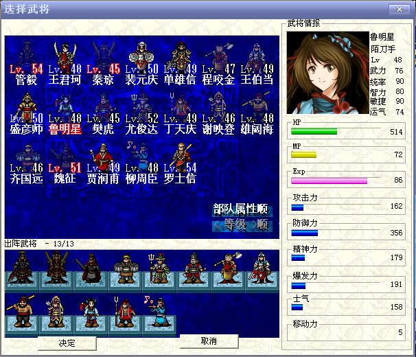 除了秦琼老齐自己气合以及装墨阳剑的步兵外,用十字"点兵";再是所有人加敏,用九宫"军训"