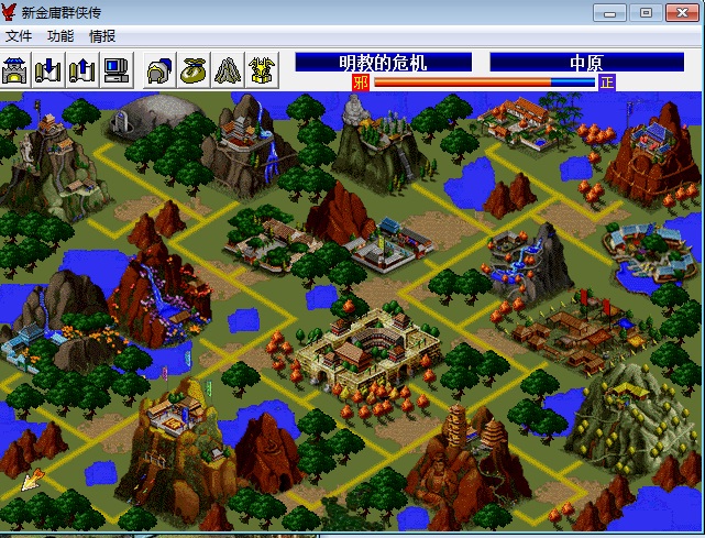 本游戏特色就是将传统的DOS版本RPG游戏《金庸群侠传》和战旗游戏《三国志曹操传》相结合,让你在游戏的过程中既体验RPG游戏自由行走天下的乐趣,又体验战旗游戏中排兵布阵的快感。游戏将分两条线,不同的线将决定不同的剧情、不同的结局和不同的人物加入。