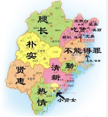 福建人或者在福建待过的都应该知道这么一句:好男不娶福州女,好女不嫁莆田男。竟然和lz的图惊人吻合。。。