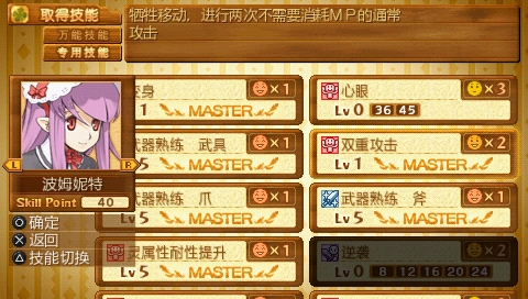 逆境:面对比自己等级高的,提高必杀率。不如实实在在把点数加在武器的熟练度上。