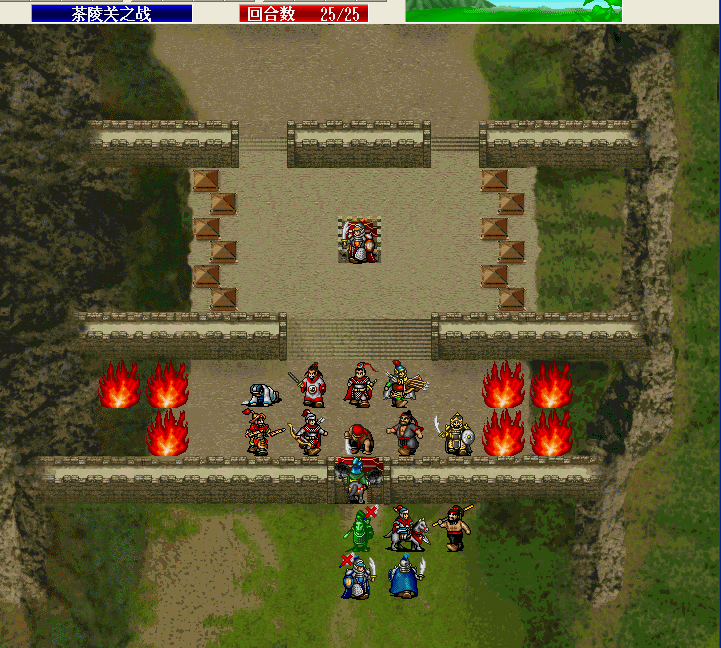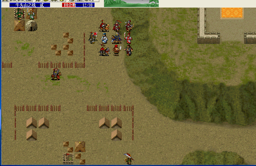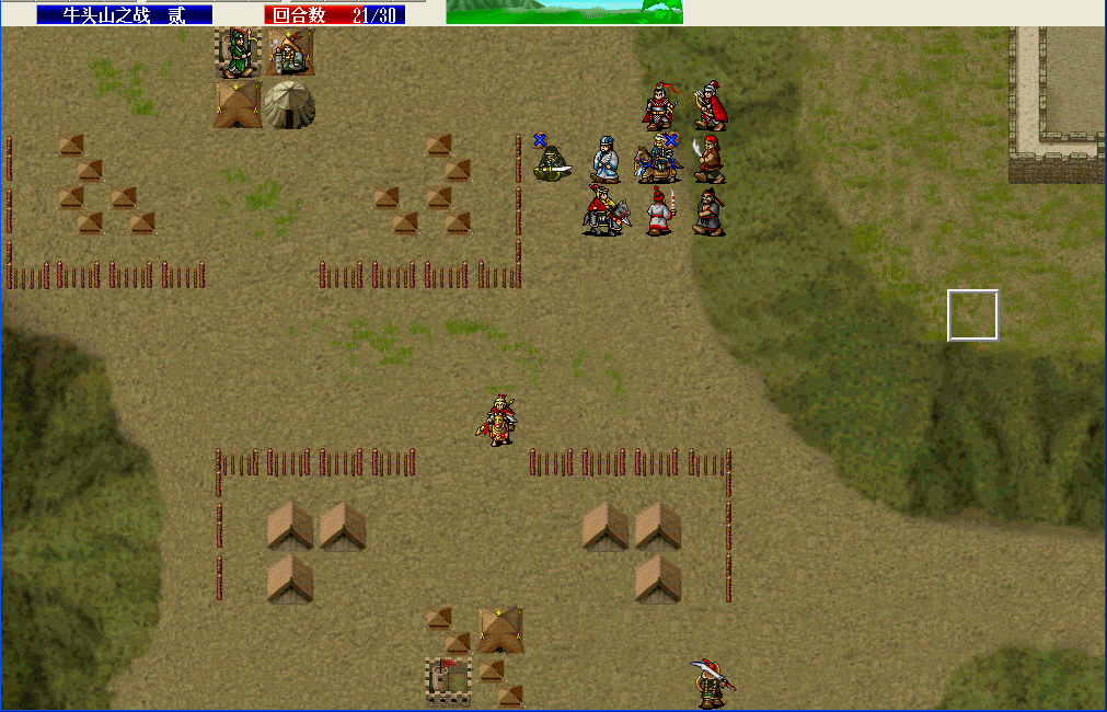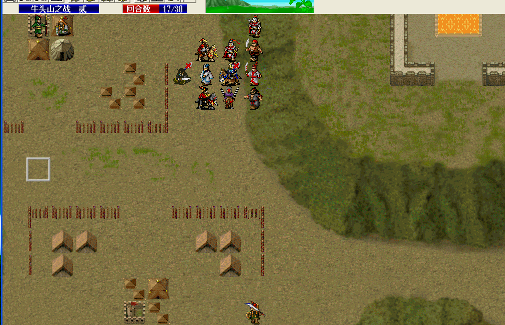 3、牛皋和岳飞冲入武校场之后不要在场地中心恋战,边打边走,优先灭掉弩兵和弓兵等不能反击的敌兵,剩余敌兵引到城门口被反击吃尽比较合算。