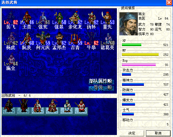 等级太平均了 怎么冲的上去 希望LZ仔细看看 岳飞传敌军等级是根据我军出战的最高4人等级计算的 而不是整体平均等级