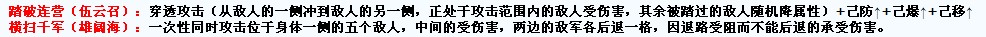 雄阔海的横扫千军,是“中间的那个受伤害,两边的敌军各后退一格并降低士气”