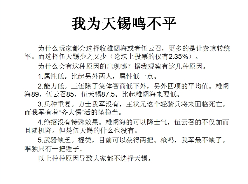 标题: 三伍分析(条件:拖级成功), 三伍最适装备搭配+我为天锡鸣不平