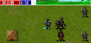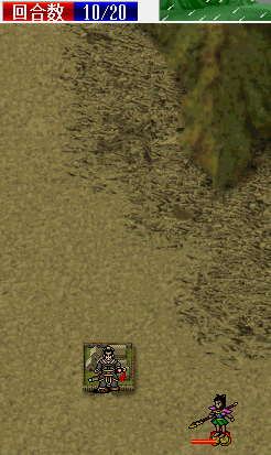根据,全忠可以在反击一个小兵和梅武的攻击一次再加单挑无双击或暴击单挑打败梅武升到4级,最好让全忠在下退之前单挑梅武并升到4级后才下退,所以我们第一回合让全忠通过站位在不被弓兵攻击到的前提下反击步兵