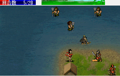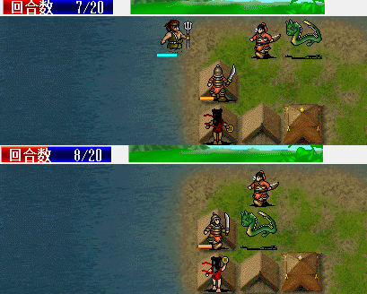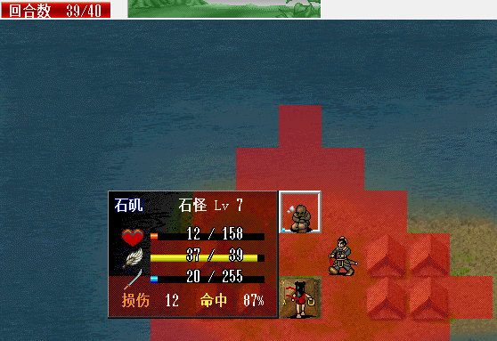 第四回合,利用残血启军,引二友军走位杀敌,SL一下全忠和老爸多格档两下,省下粮食