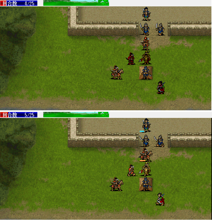 围攻击退魔礼青旁边的步兵。11回合击退天化暴击击退魔礼青