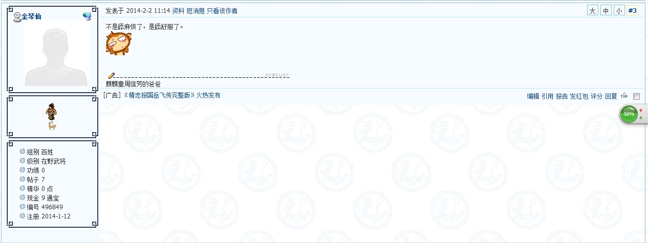 会员金琴仙,编号 496849,在登闻鼓投诉贴中利用一个错别字,恶意曲解,用词低俗,扣500分,封禁ip两周。