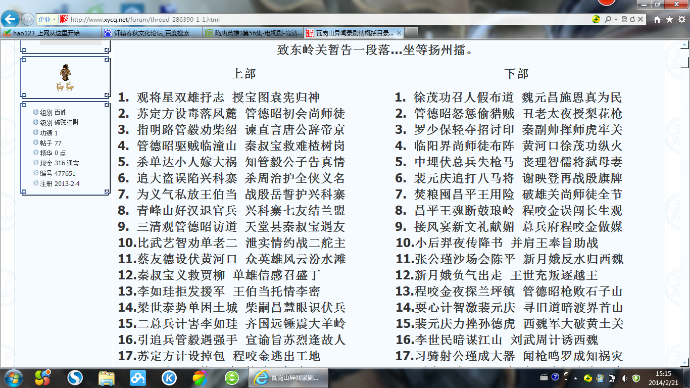 标题: 瓦岗山异闻录剧情概括目录, 致东岭关暂告一段落...坐等扬州擂