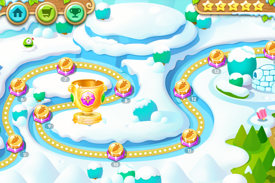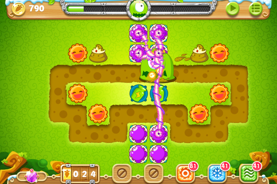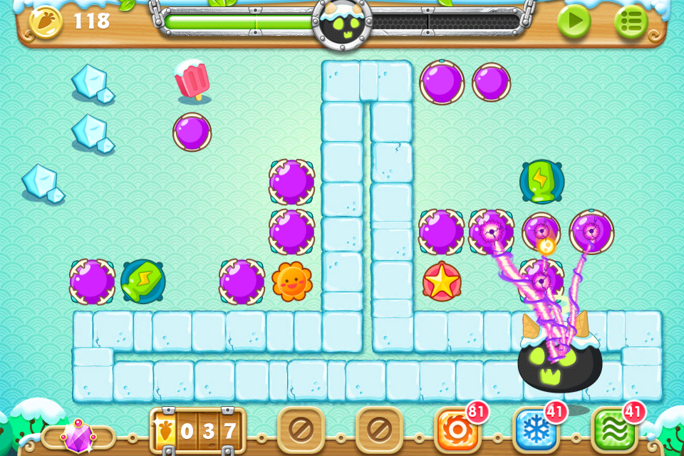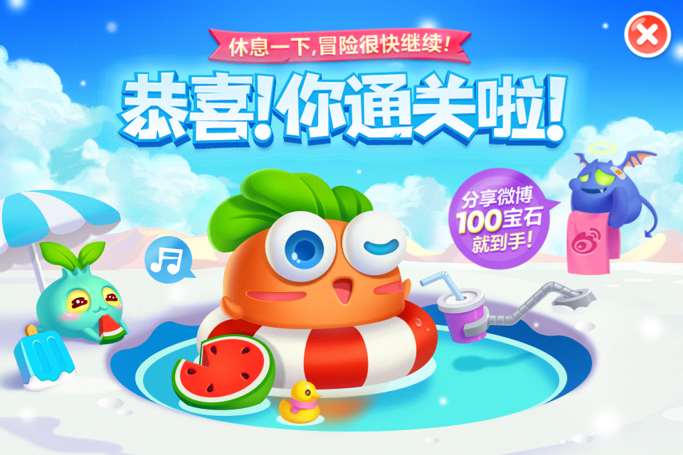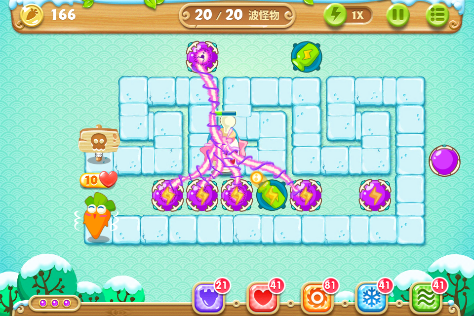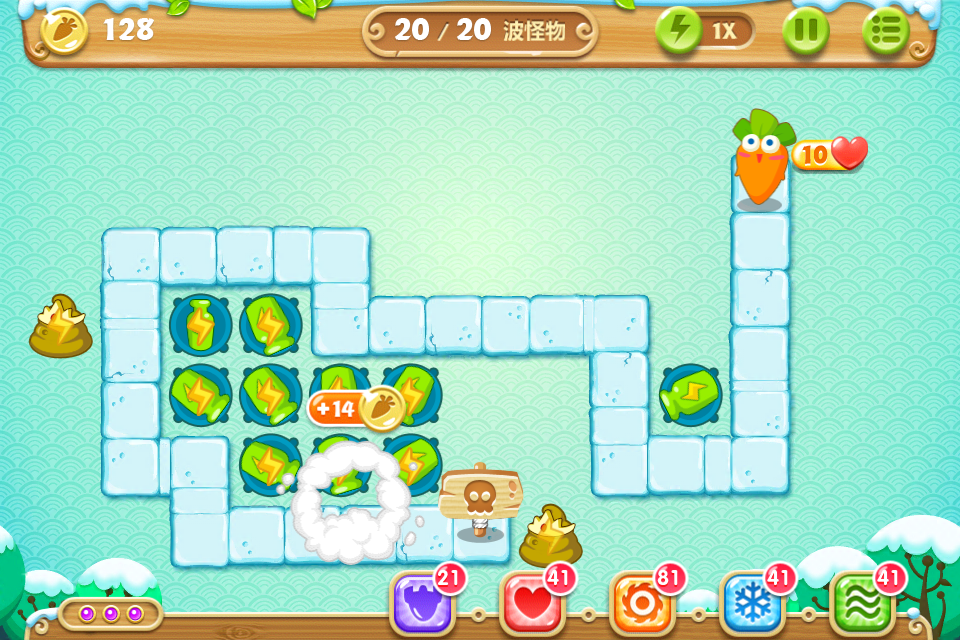 目标:不用魔法攻击,不用带技能的萝卜,全部65关收集金萝卜、水晶萝卜、全灭道具过关