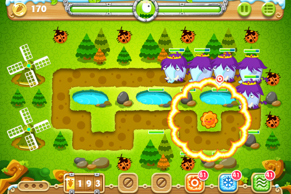 保卫萝卜2从13年11月20日发布,在1代的基础上增加了魔法攻击,增加2个萝卜(1个迷惑攻击,1个多2条生命)