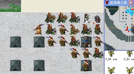 第一回合,先给汤怀分配好功勋,然后汤怀右上走攻击金兀术右边的弩兵。这里要SL下,必须保证弩兵的反击汤怀被格挡,再次行动后走到右上角落,灭掉那个弩兵,顺便升到69级。九成走到汤怀前面用强阵。这时汤怀身上防精运3个BUFF。敌方回合,2个人混乱,AI是外面的小兵先动,下面2个骑兵会上来攻击汤怀,把汤怀围住,这样金兀术就接触不到汤怀,他会进右上那个兵营对汤怀用狂风。这样汤怀只承受4次攻击,2个骑兵,金兀术的狂风,金兀术营里的一个弩兵。弩兵攻击50+,金兀术吹风100上下,2个骑兵,2个骑兵因为是背后攻击每个伤害有160上下,总伤害大概470左右,汤怀有490血,一轮下来大概还有20左右的血皮。这里不得不说天气,一开始我也没注意,后面有几个回合金兀术的狂风伤害一下子飙升到130+,汤怀直接躺了,试了几次才发现是天气因素,雨天对吹风有加成,而晴天伤害最小,69级金兀术99点MP,狂风要20点MP,所以最好保证前5回合都是晴天,否则汤怀顶不住,或者SL每次伤害都浮动到最小,可能还能剩下个位数的血皮,不过这个SL量太大,还不如SL天气比较好。