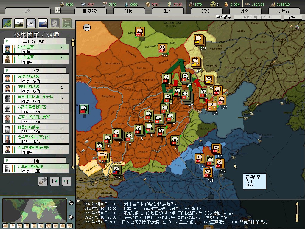 后面太顺利,没发的意义了,消化东三省后,留下标准常备及几个山地在鸭绿江玩耍
