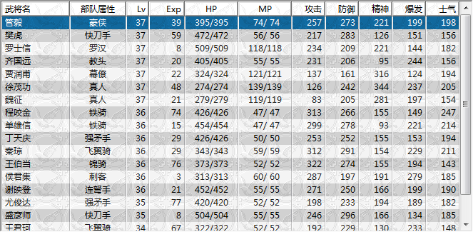 7.北平之战:战前剧情不帮青衣人,能力有限没能全灭敌军,触发加秦琼好感的两个单挑,最终以管毅24级,其他人23级结束战斗。暂无人员损失hp和mp。