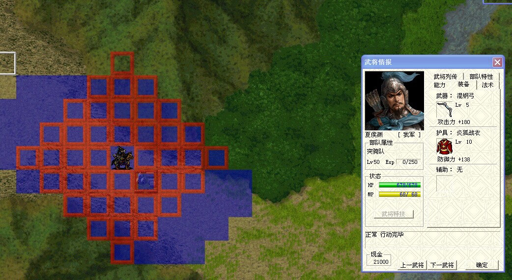 这攻击范围不是已经变了吗,你再看看不带炎狐的夏侯渊是什么攻击范围