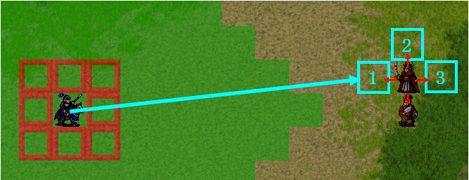 下图AI有三个等价值的攻击位可以攻击,优先度是1-2-3