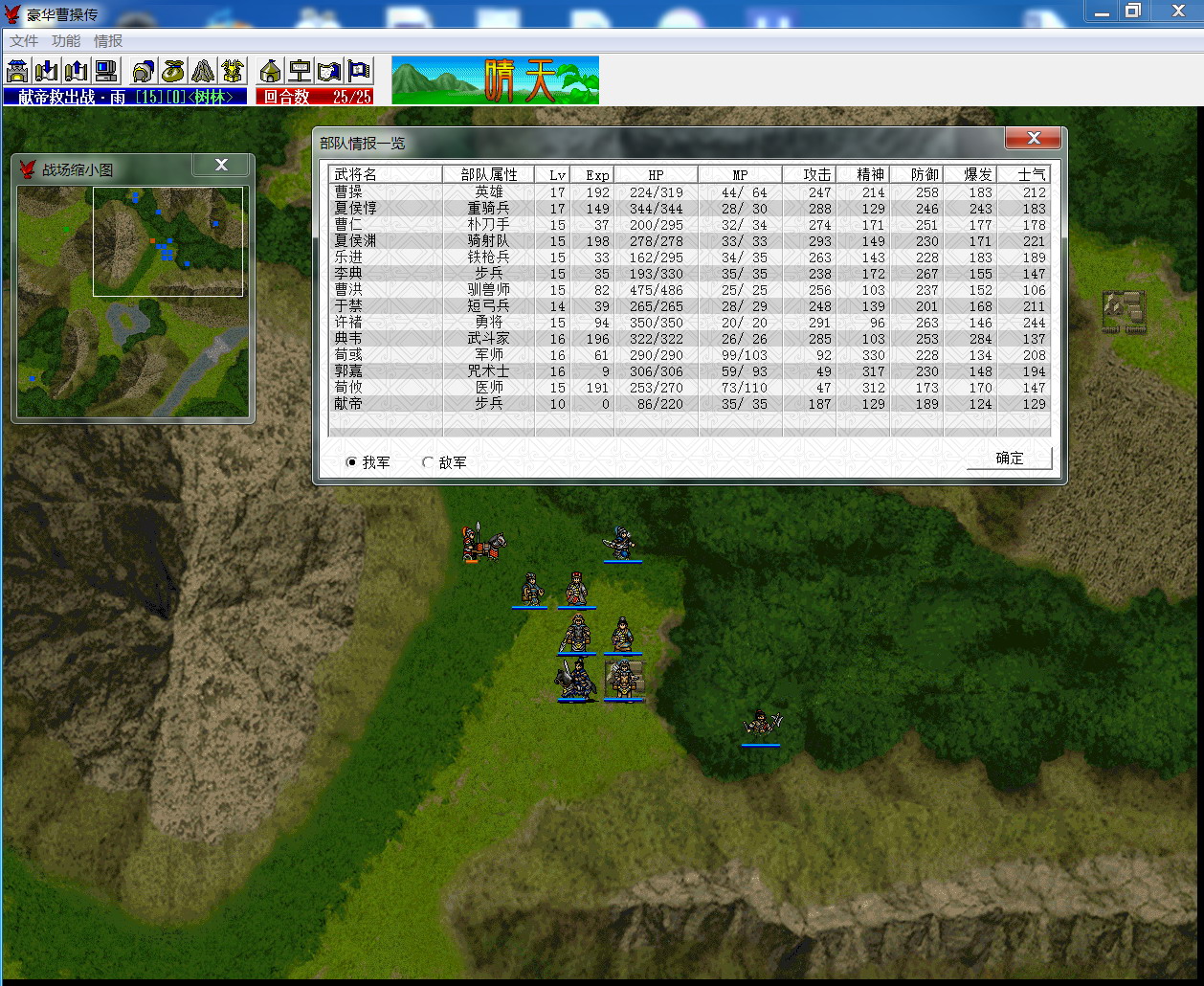 夏侯惇,徐晃,曹洪3人靠荀攸每回合援队搞定,渊也没过河,曹老大和典韦自己扛着大部队,所以最后回合数非常紧,不像楼主基本等于富裕1回合。