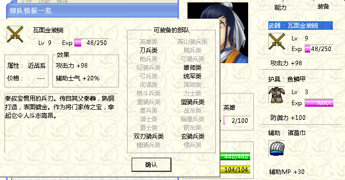 樊虎可以把仓库中的辅助装备交给没有辅助装备的我军和友军。道具全员通用,可以给自己或者周围的人使用。