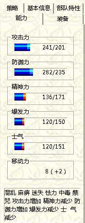 4、武将一览分我军(含友军)和敌军两部分。部队属性(兵种)暗红表示可用印绶转职。