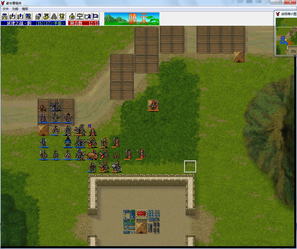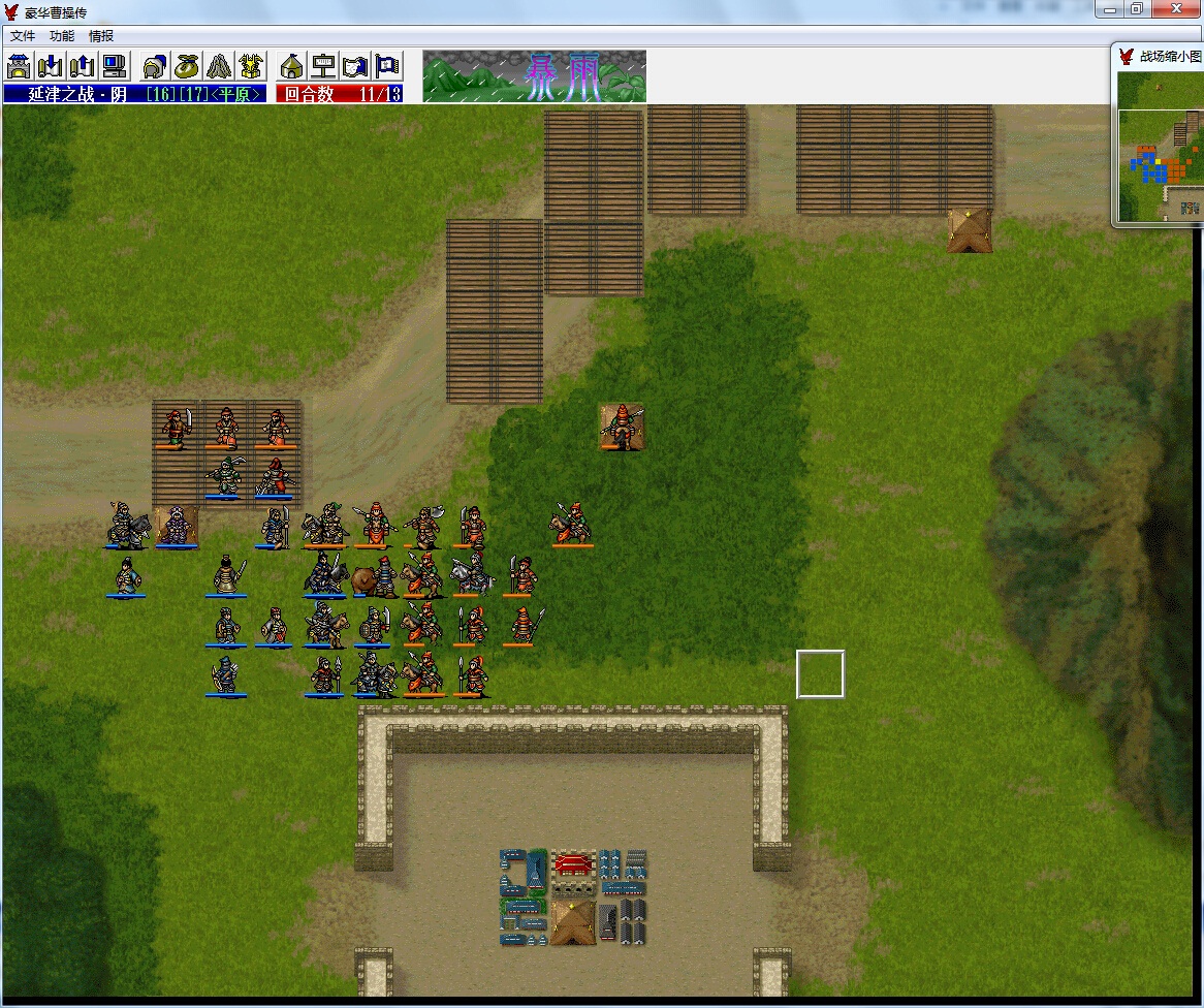 本想尝试出城打的,参考野夫大大或者辞典大大的思路,发现每次输出都是差个位数血量秒杀原来能秒的敌人。无奈尝试守城,不过再想一下没有关羽抢经验也更有助于冲级,说实话我还是第一次守城打延津,本以为13回合时间很充足,打起来才发现没有精神增加BUFF再加上守城的平原地形,很多人输出很无力(比如店货许褚主动攻击白马骑只有52点伤害竟然打不空白马骑的蓝)而且谋士团的输出也差了一个档次,最后还发现郭嘉跟贾诩蓝不够用了。。。