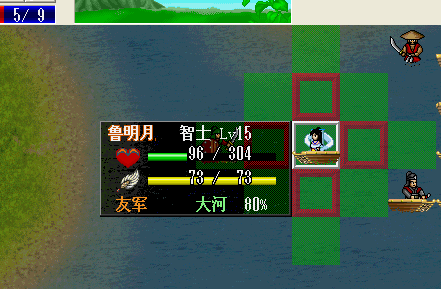 2、鲁明月水中只能走2格,千万不要被挡路。