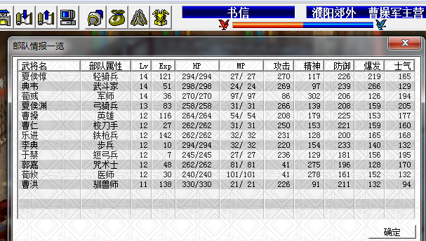 清的差不多的时候害死华雄再去慢慢清李肃那帮人时间完全来得及(这里曹仁 乐进都可以进树林打,为了经验多一点,输出少一点,我在平原打的)