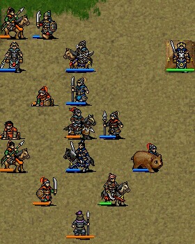 第一回合孙坚后撤,集体往前走一点,小夏侯走到袁绍前面步兵的斜下方把敌人的一个步兵勾引过来砍他(还有个弓兵也会过来射他)敌军阶段黄盖程普撤退。