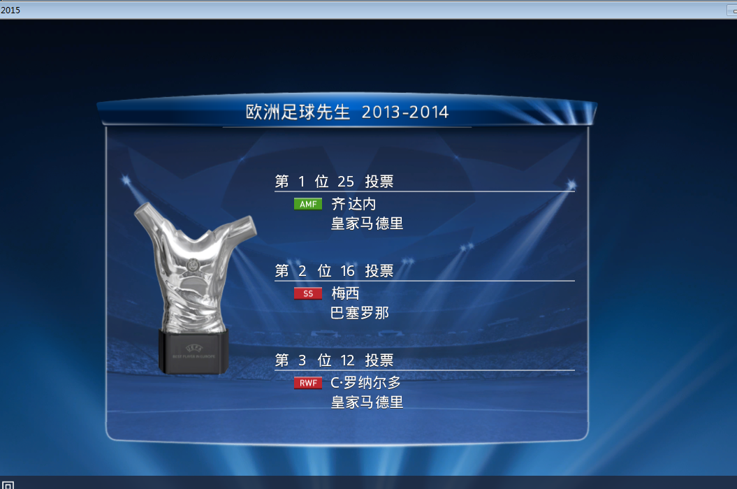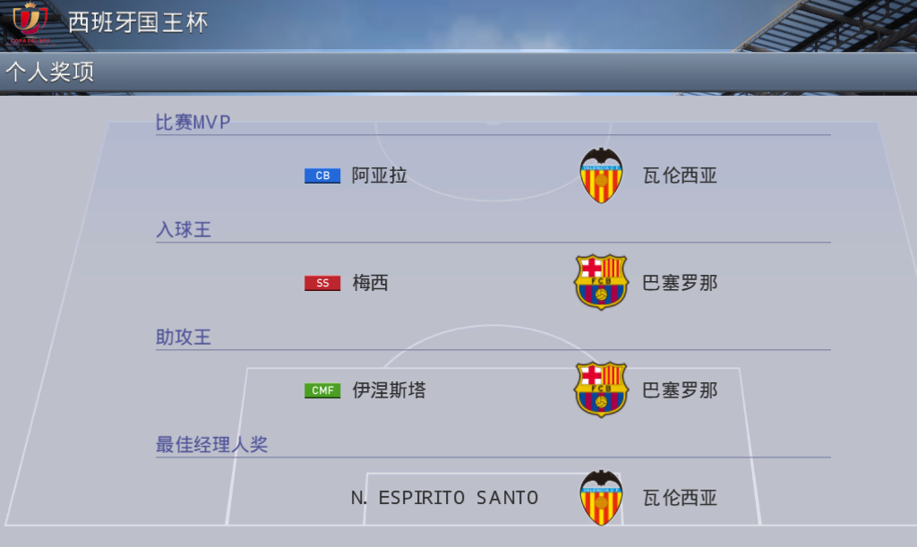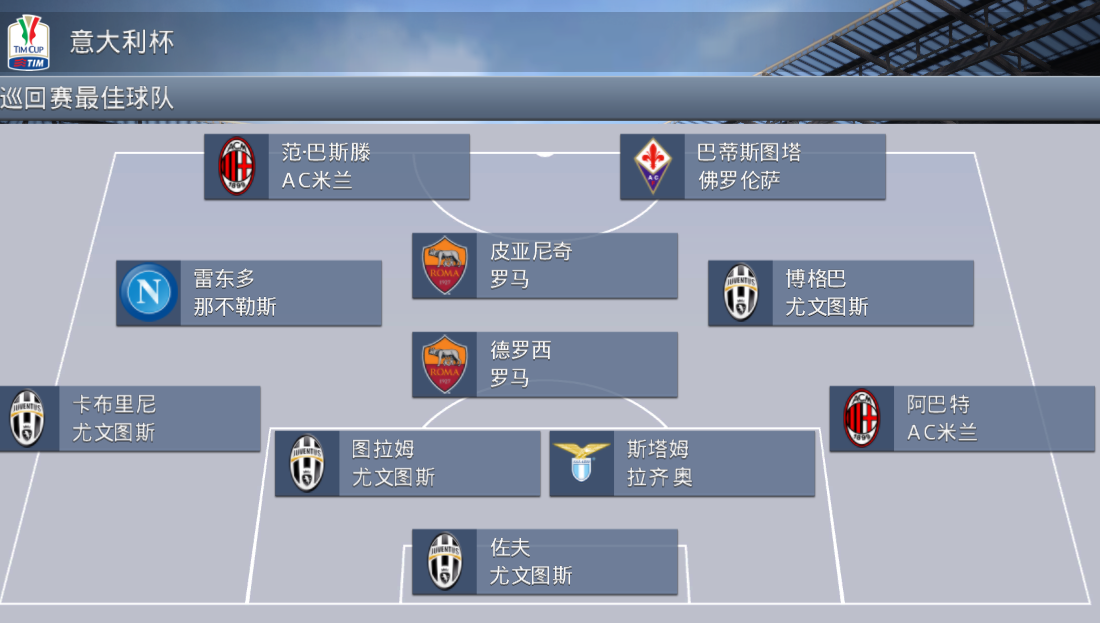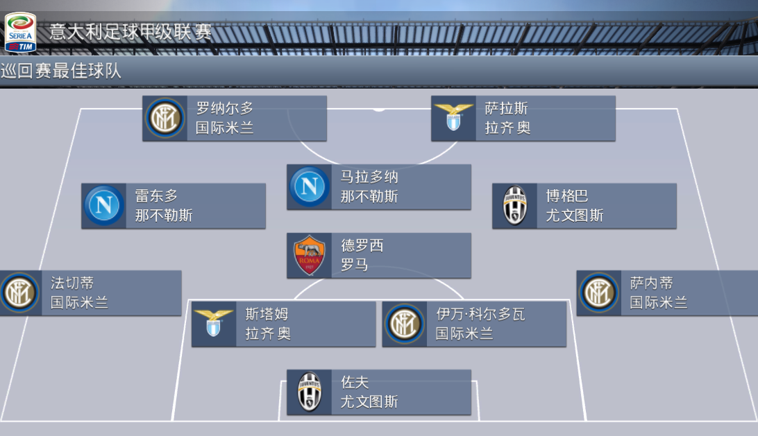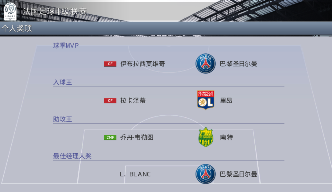 开赛抢了佩兰的饭碗,随手逼平曼城,点球胜之,拿了本赛季第一个冠军。欧洲足球先生被那不勒斯的雷东多获得。