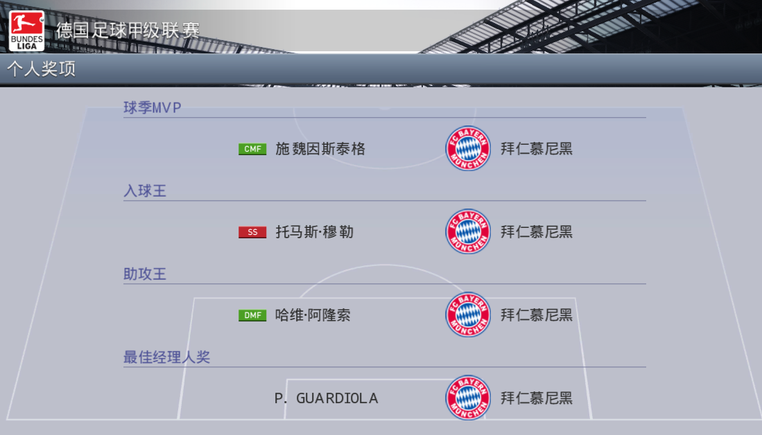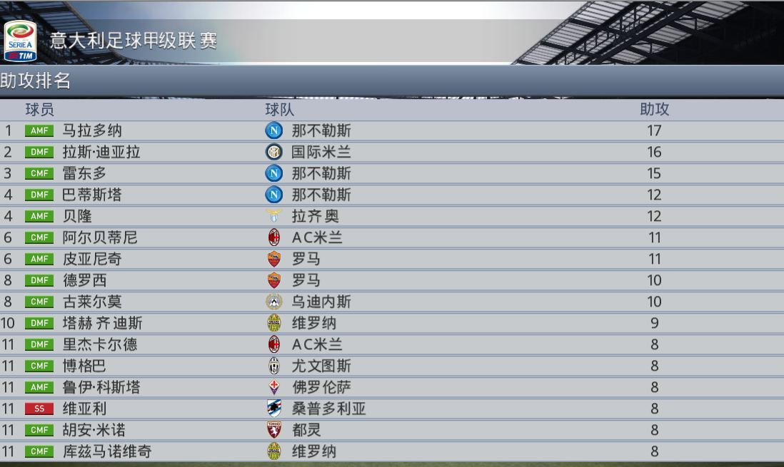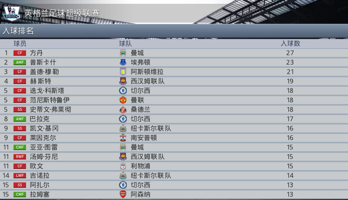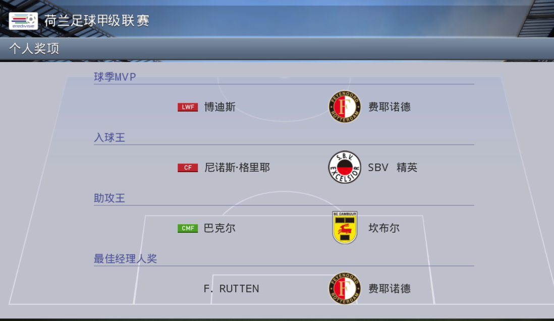 开赛抢了佩兰的饭碗,随手逼平曼城,点球胜之,拿了本赛季第一个冠军。欧洲足球先生被那不勒斯的雷东多获得。