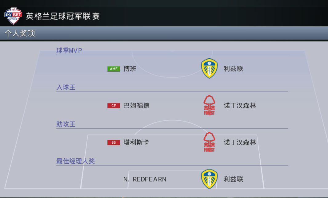 故事的时间从0405赛季变成了1415赛季,主角依然是托尼唐恩教练,不过因为贝尔已成名,阿金费耶夫也老了。由森林传奇名将皮尔斯和希尔顿入替,青年队全部由《冠军教父》书中森林队员组成。