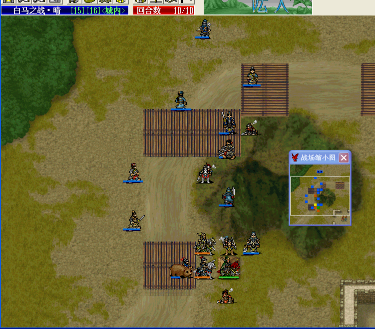 李通去参战,徐晃、曹洪拉开阵势反击一轮。典韦后退一步输出步兵,李典退到荒地上(不知道这是不是正确的选择,不过后面为了卡位必须站一会荒地),其他人该补给补给该输出输出。上路卡位+输出,干掉突前的骑兵。上路先援队曹仁右上一步,许褚右一步围攻,荀彧风阵,荀攸帮忙挡住,上路已经基本成型。见第五回合: