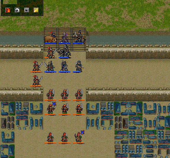 曹操给典韦加血,典韦回到曹操的位置继续揍步兵。郭嘉给徐晃加血,徐晃跟李通站位输出。曹洪去把凤凰换给曹操。其他人干掉门口的长枪兵和他下面的弓兵,李典走到那里。见第七回合: