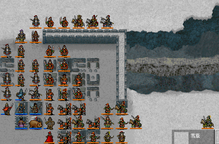 为了黎阳前面进行了痛苦的冲级。拥有了6级装备难度下降了不少,但是这一关仍然具有难度。就我的情况而言有以下几点问题:第一,几乎没有人有转职福利(除曹操两夏侯外,都是27-28级,即使能转职也是后期了),第二,乐进、曹仁、许褚、张郃没到3转,没有3转的特性,但是敌人的同兵种是有的(不过于禁由于特殊的特技,攻击范围跟敌方弓兵一样,他成为了这一关的头号功臣)。第三,这些人跟敌军差了2-3级,能力差距很大。
