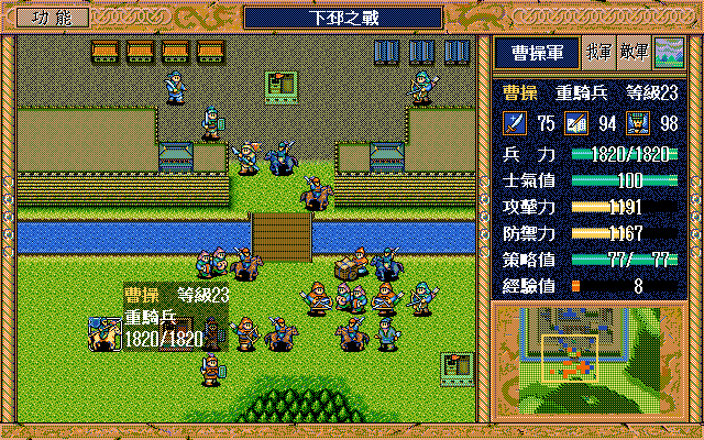 另外,如果随机数完美的话,中间是有机会节约一本焦热书的;就是在进城门的时候,不要牵制中间定位荀彧的步兵,这样刚好糜竺可以普攻这个步兵一次(我打的时候没算这个,以为肯定不够打就多用了一本焦热书)。但是城门布阵必须要S/L许汜变傻瓜,我实在没有耐心S/L这个了。
