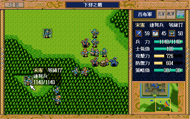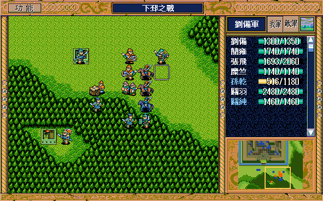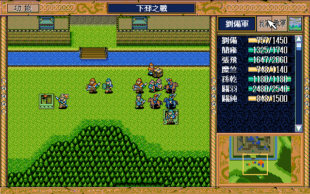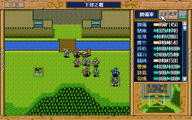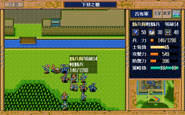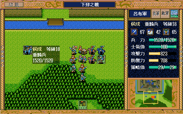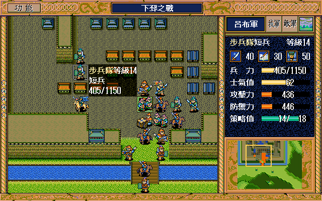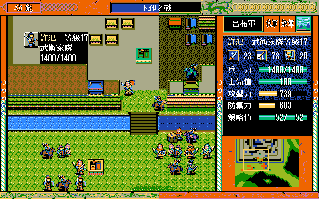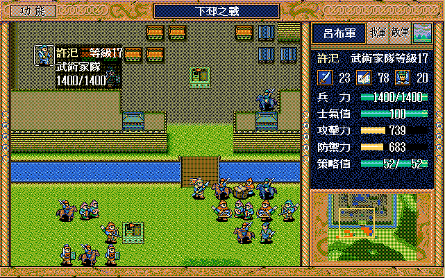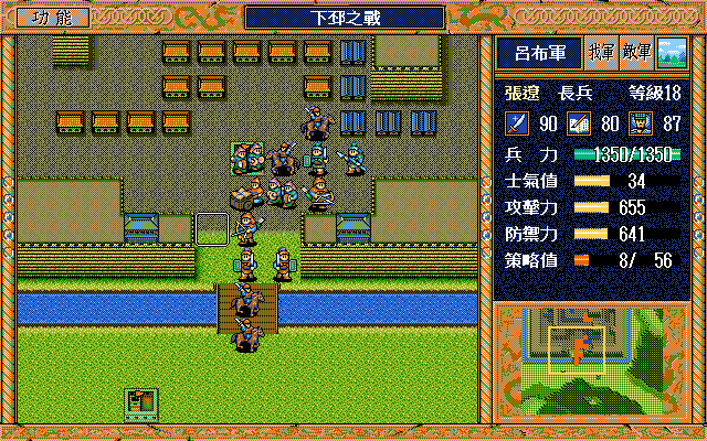 另外,如果随机数完美的话,中间是有机会节约一本焦热书的;就是在进城门的时候,不要牵制中间定位荀彧的步兵,这样刚好糜竺可以普攻这个步兵一次(我打的时候没算这个,以为肯定不够打就多用了一本焦热书)。但是城门布阵必须要S/L许汜变傻瓜,我实在没有耐心S/L这个了。