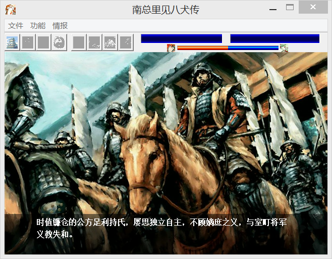 本作为光荣出品游戏——曹操传的MOD作品,由八犬传制作委员会制作。本作以日本战国时代初期的关八州为舞台,讲述被诅咒的公主伏姬,以及八位分别持有“仁、义、理、智、忠、信、孝、悌”八颗宝珠的武士的故事。目前本作已经完成至前章第一话“芳流阁两雄动”(第16关),整体进度约为15%。