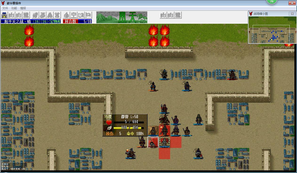 写这篇战报之前要特别感谢赛特122(jhzthpp)提供的豪曹14阳平关50级满级存档以及伯伯的曹操传优化补丁,让楼主能更好的实现自己的战术思路。下面说正事。