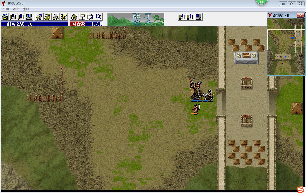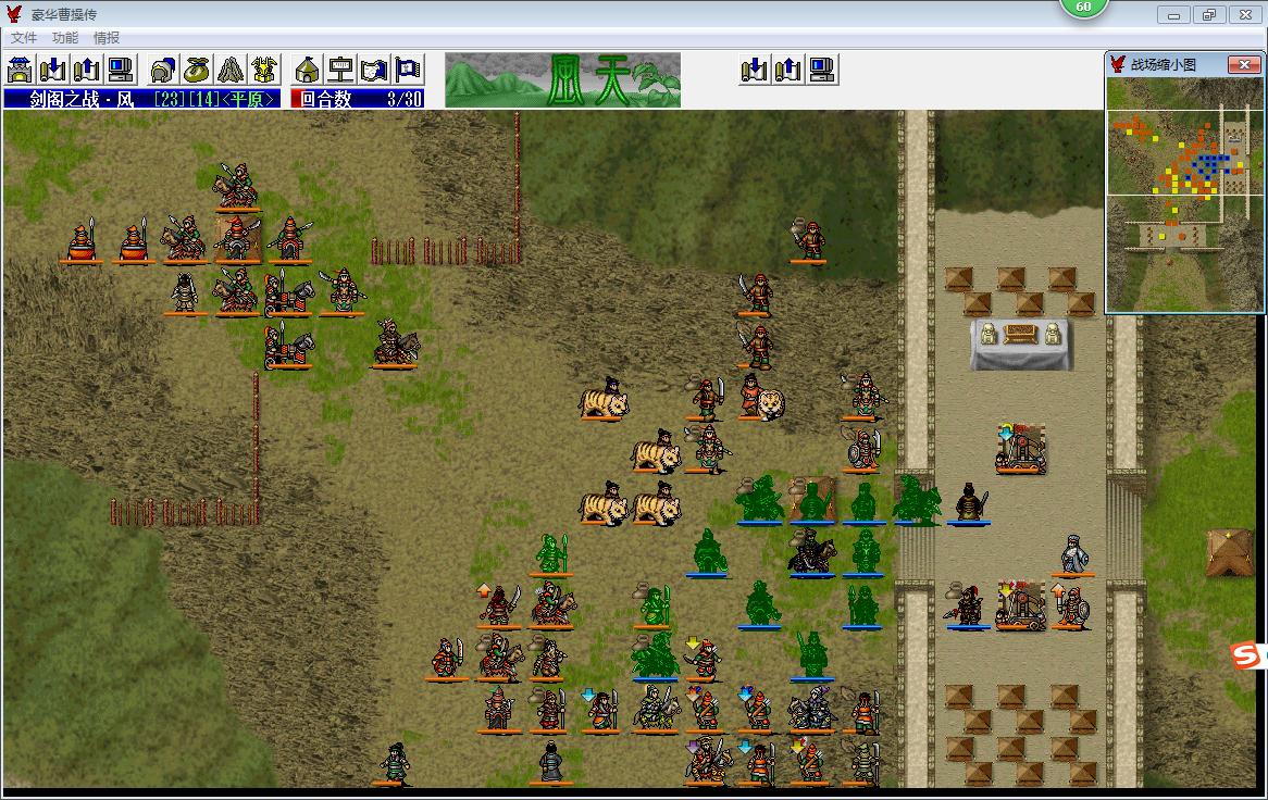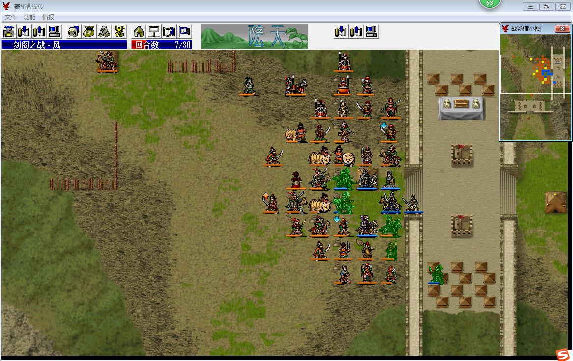 剑阁的敌军算是动用了吴蜀两国剩余的全战力,总人数是80人,其中名将34人,数量占据将近一半,非常可怕。因此,优先击杀敌军的名将,尤其是杀伤力巨大的武将和会补给的文官非常重要,如果开局了杀了过多的小兵,由于我军不断有人员撤退,很容易造成后面我军和敌军的实力对比严重失衡。所以,开局对敌军关外步兵攻击范围的小兵最好不要先杀,远程能忍则先忍,集中力量剿灭敌军名将,前面六七回合杀敌军名将的占杀敌总人数的比例最好能达到七成以上,后面打起来就会相对轻松很多。