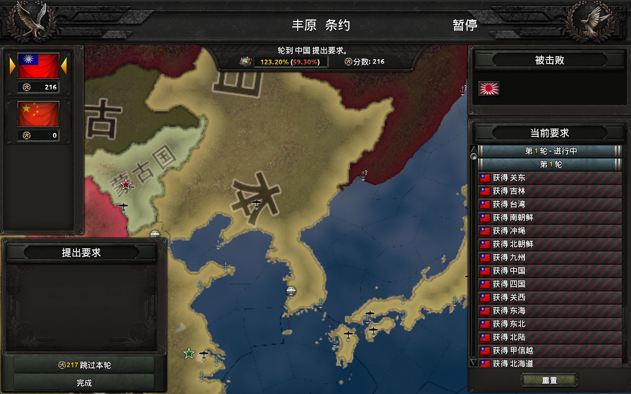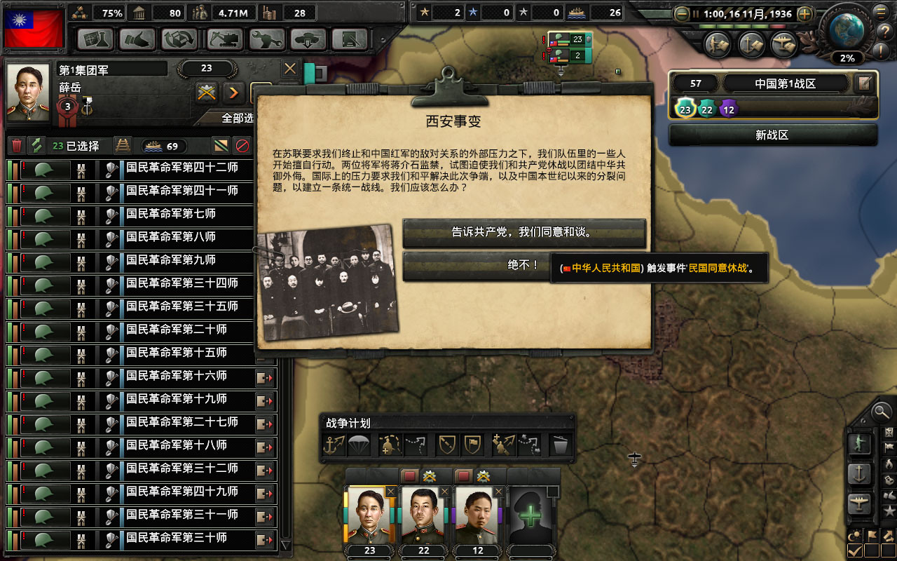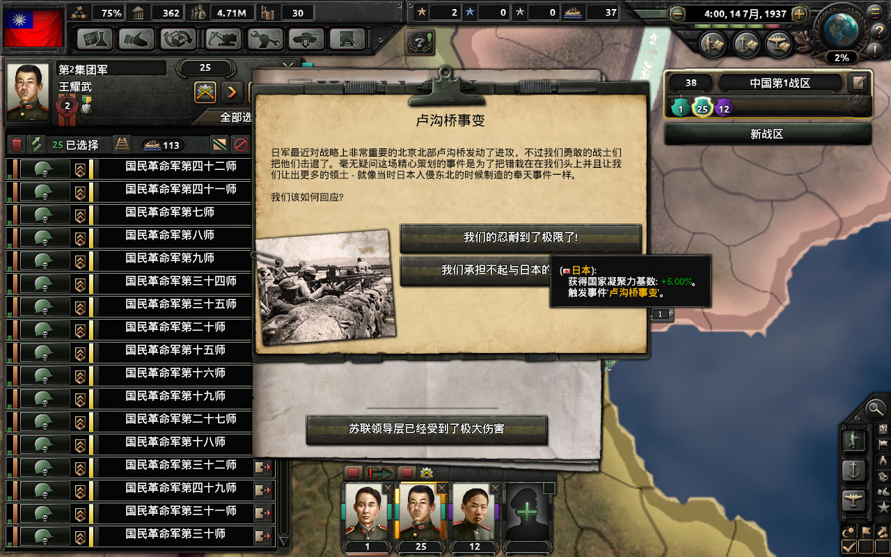共21个国策,吞并日本前研究完要点开最后一个科技共享,吞并本子后土共会退出统一战线,之后没阵营就点不了了