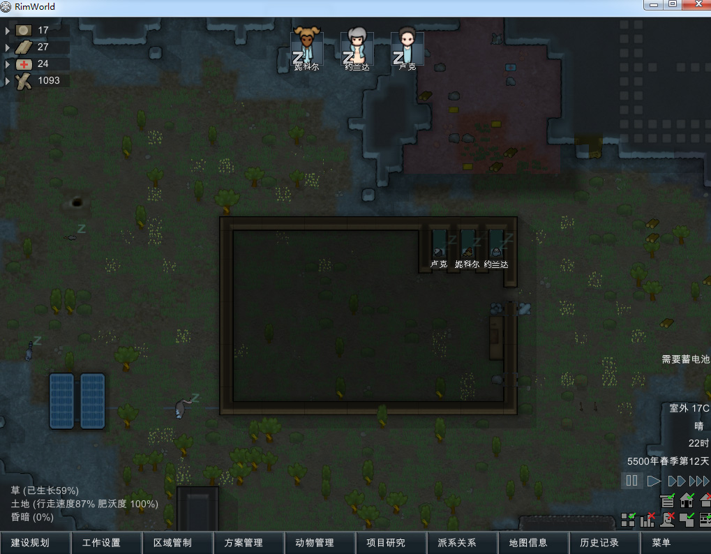 明天就是把左下的墙拆了回收点砖块造一个小型的堡垒,然后就要向山里挖洞建更安全的基地了