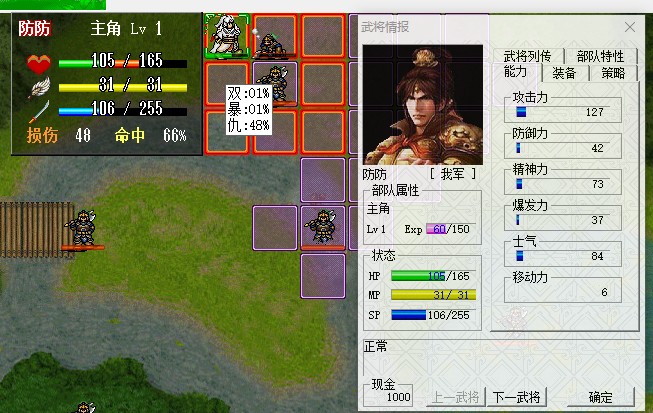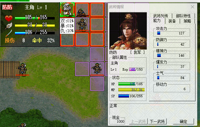 6,类英杰传的士气值的一个系统,SP为0被攻击必被击退。